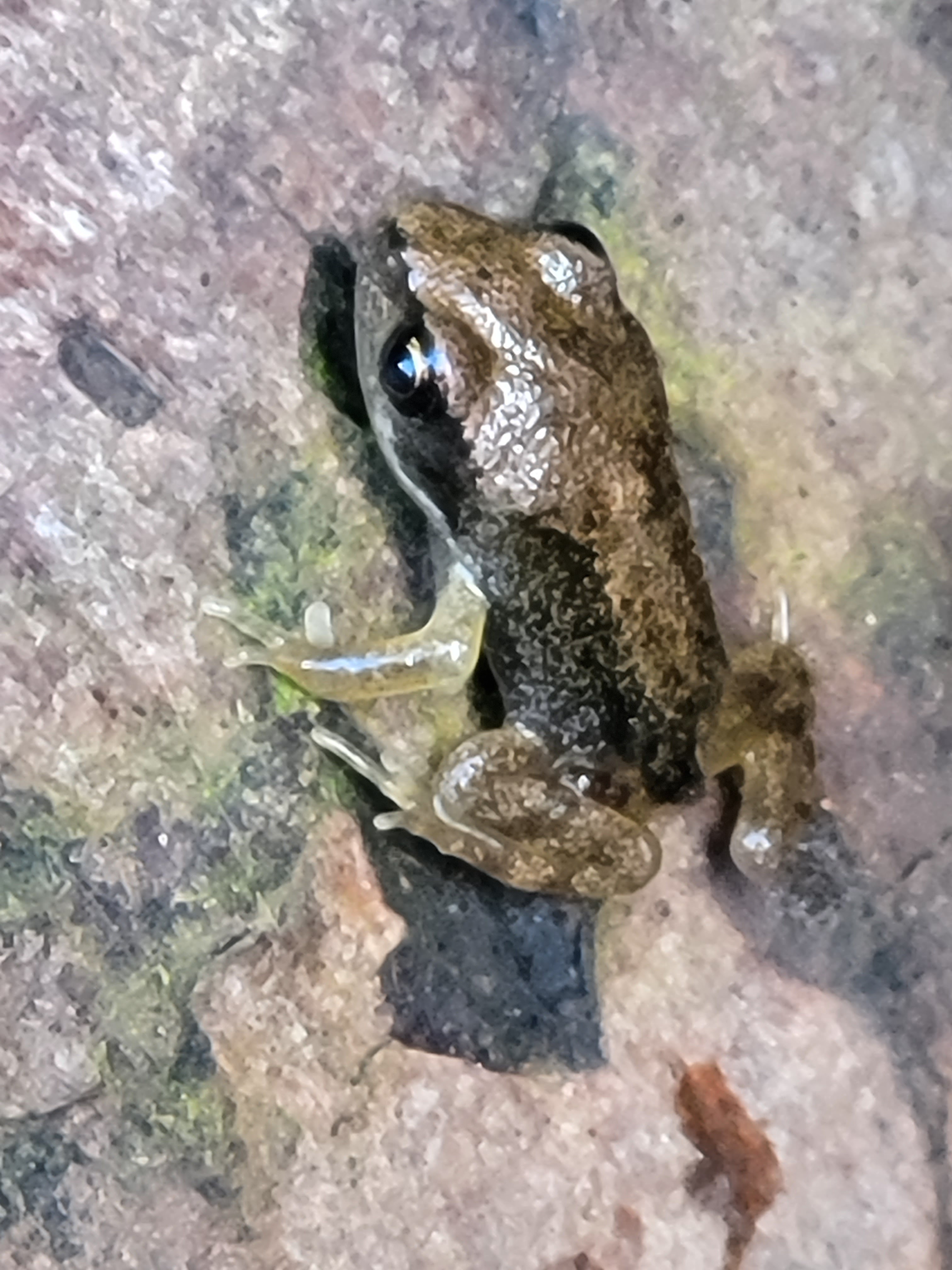 Except one. On my way back to the house I passed my new frog staircase and a movement caught my eye. A single froglet, trying to blend in.