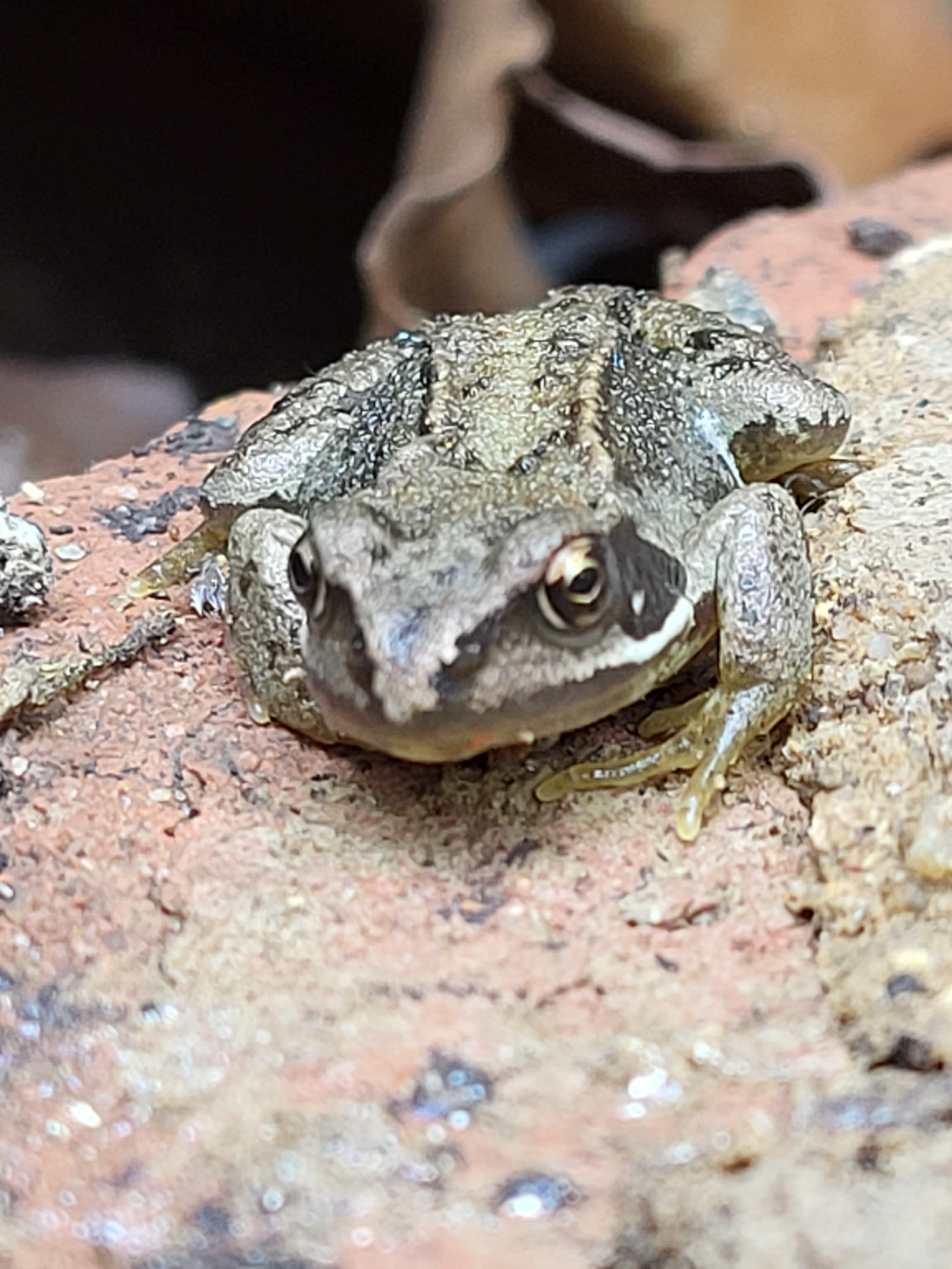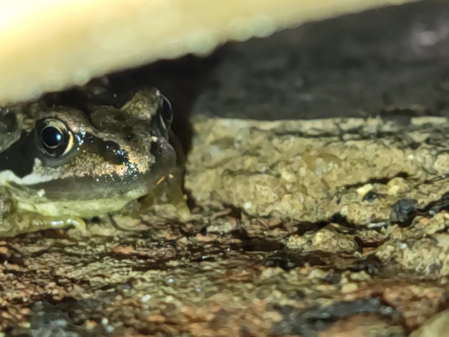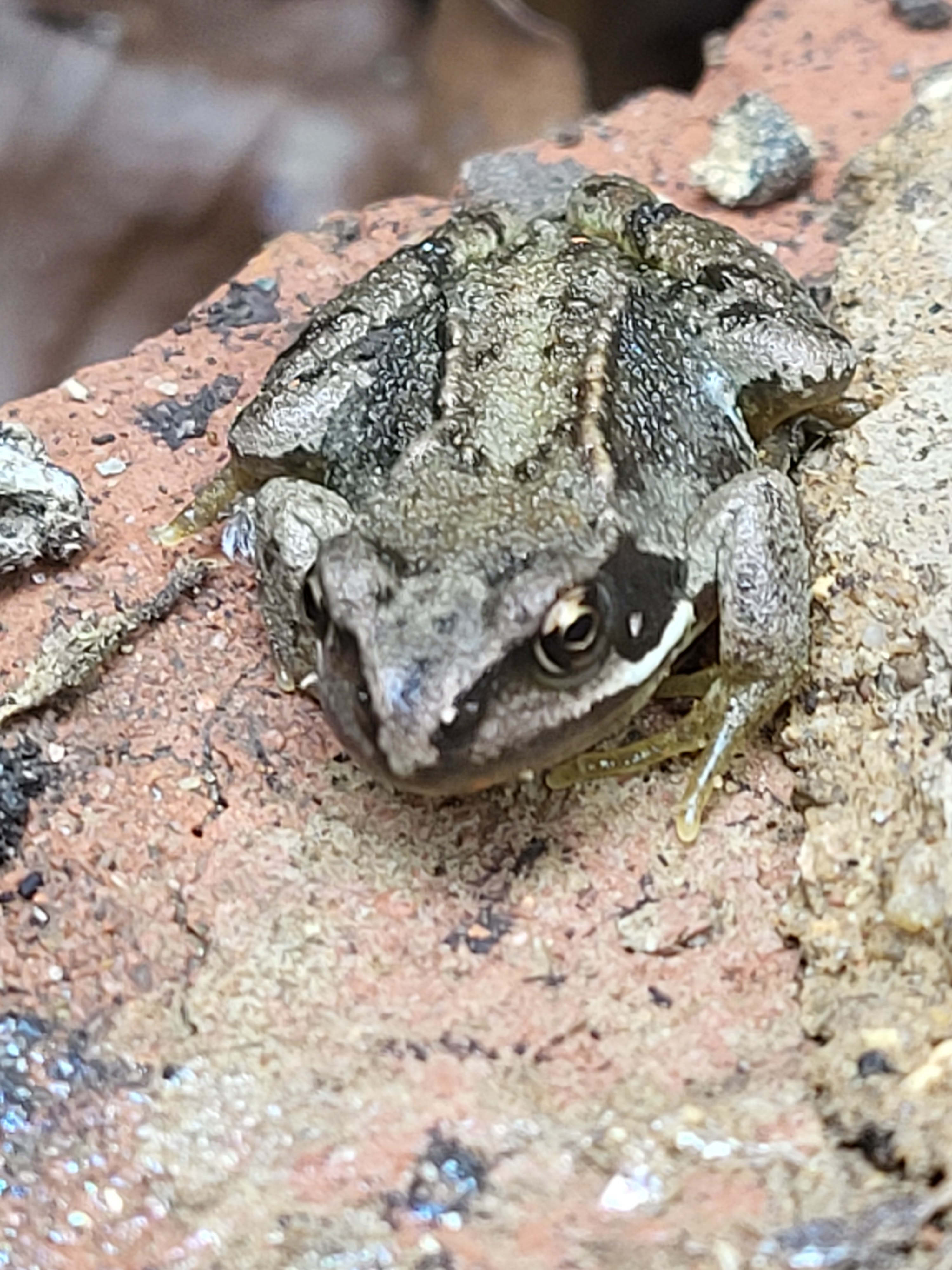 Frogs are usually quite obliging, playing dead for a while, so I get a few images saved before they make a leap for safety. I haven’t seen a frog for a while but here’s a nice one, found under a coping stone. I’ve used close up but also added a picture giving an idea of the actual size compared to the brick it was sitting on.