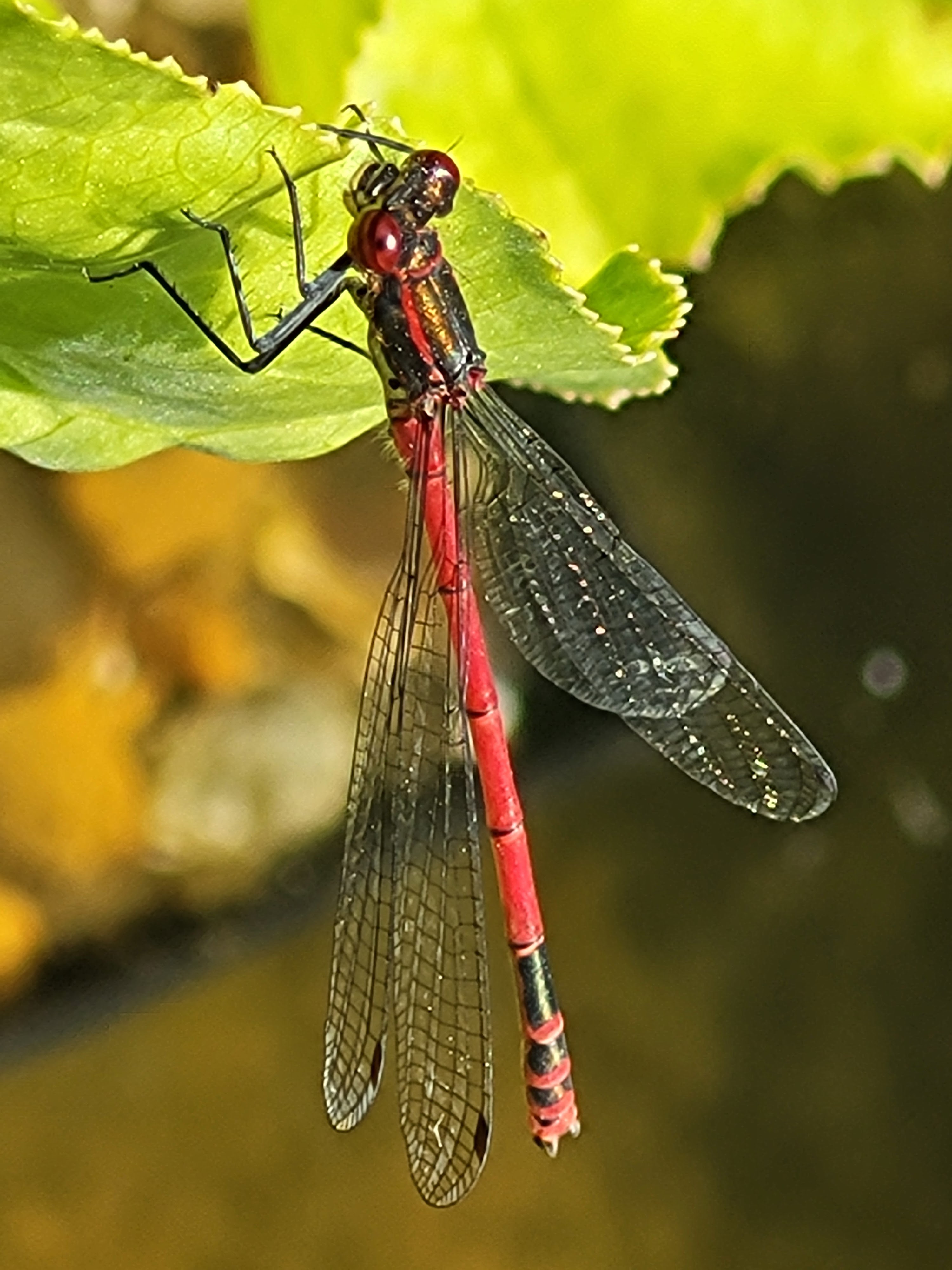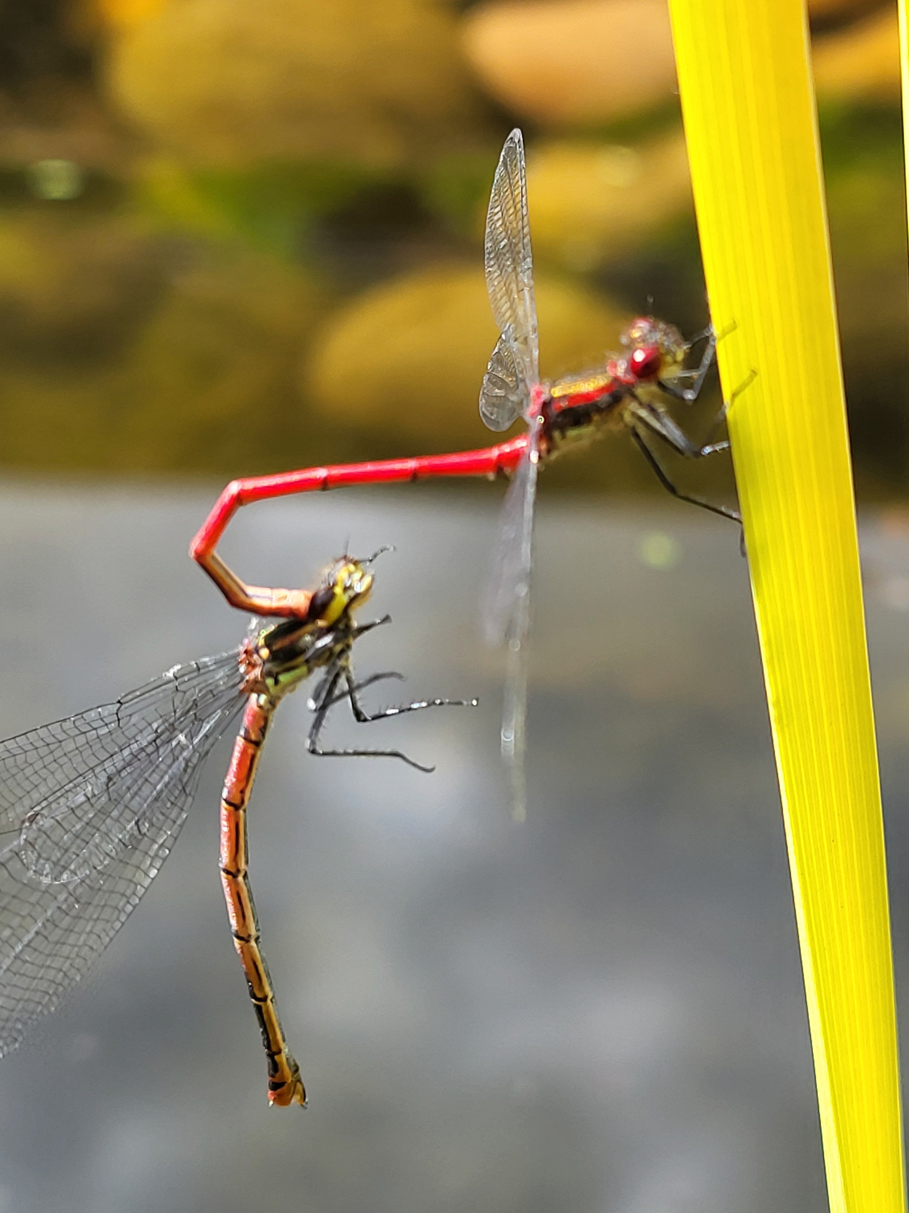 More pictures of damselflies. They stay still for ages, so I can capture a decent shot on my phone. Here I saw mating damselflies and a solitary specimen.