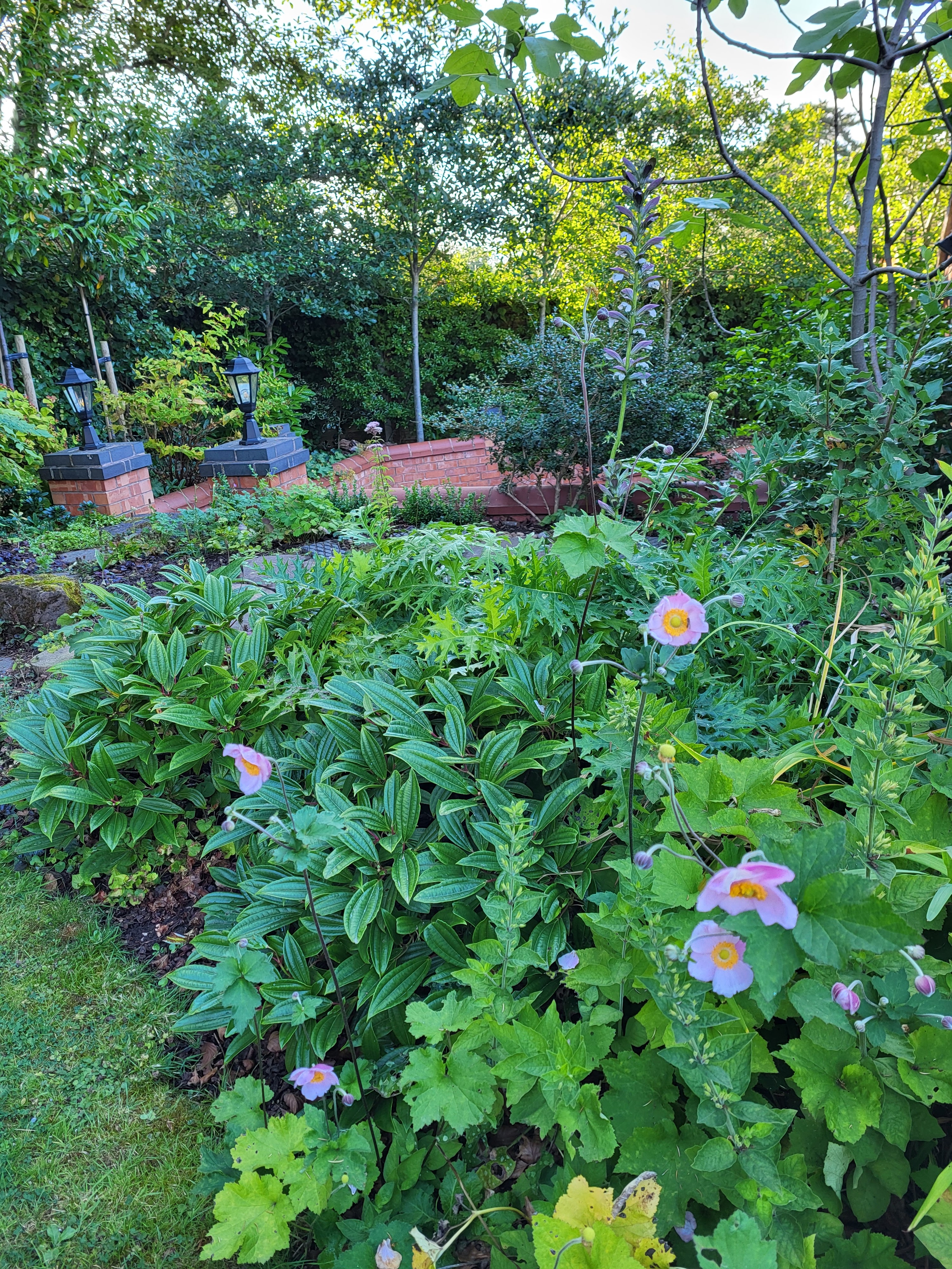 I’ve been thinking about the bog garden I planned to create when I filled in the first tiny pond. Well, it didn’t happen. I didn’t find the time or the plants, and the space just became a quite nice jumble of damp leaves. The Astilbes did very well but nothing much happened to make me love the space. So, with time off work and good weather, I recreated the tiny pond, correcting some of my rookie errors along the way.