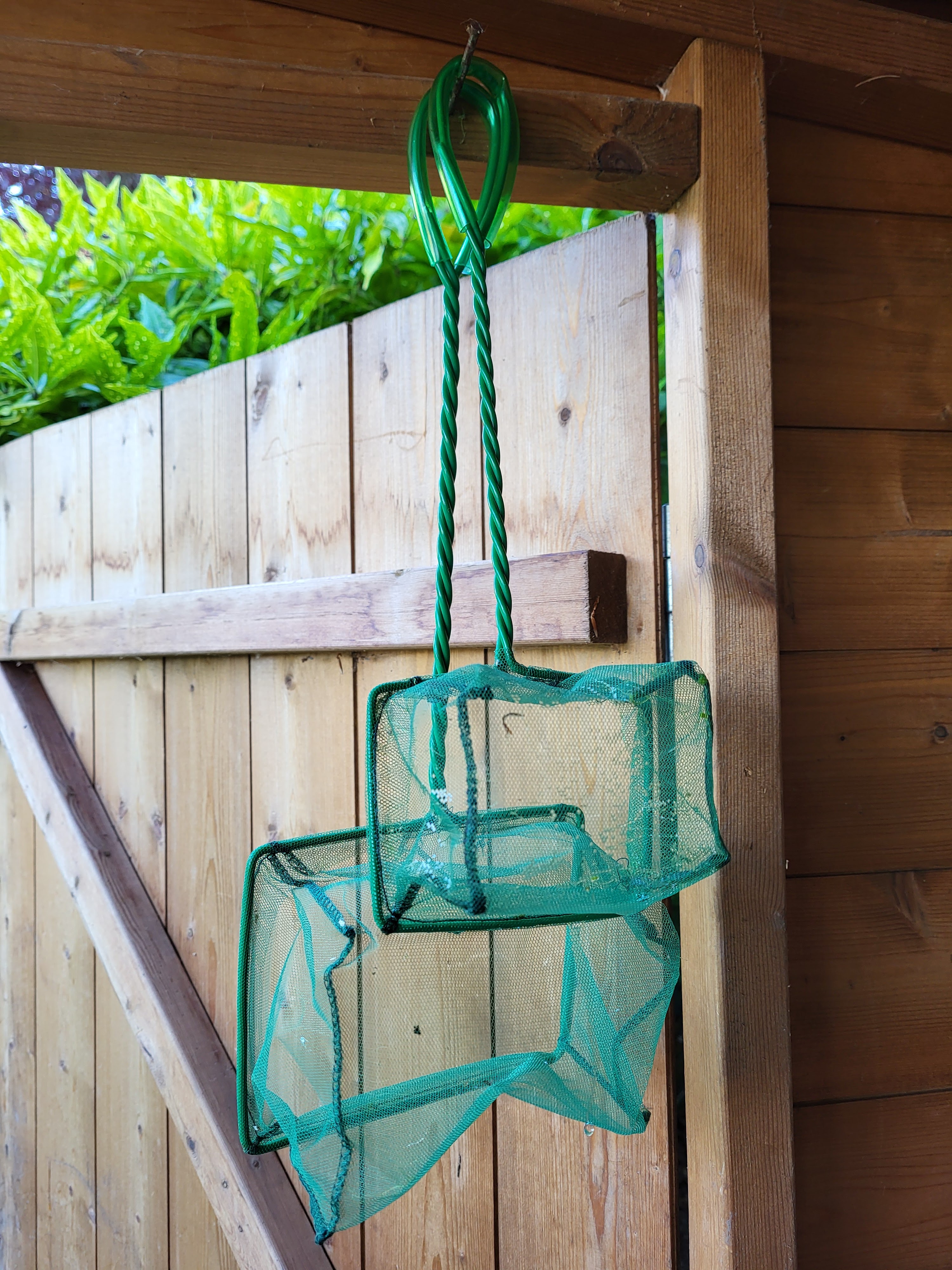 While I was filling the pond from my four water butts, my Amazon delivery arrived. I’ve bought some aquarium fishing nets so I can scoop off blanket weed and fallen leaves, to keep the ponds tidy. They work really well, much better than my makeshift colander which let everything back into the pond through its large holes. I chose the smaller 10cm and 15cm options for my tiny pond but there are 20cm and 25 cm ones too.
