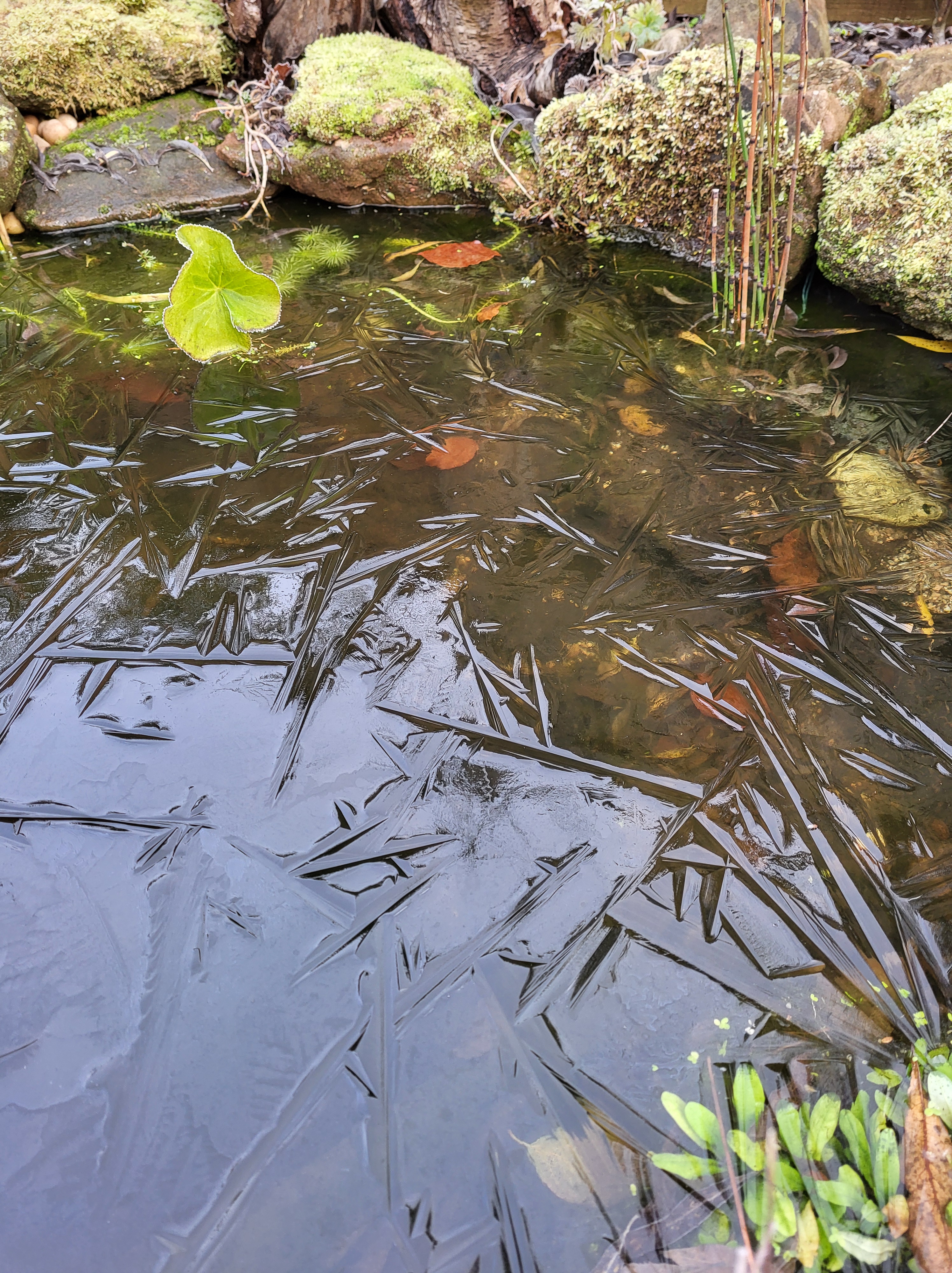 There’s me moaning about the frost disappearing. It was soon back and the ponds froze over again. I don’t think there’s anything alive in the ponds at the moment, so it’s not a problem if they freeze over temporarily. The only pond worth hibernating in is Lily Pond, because it has the 80cm deep lily pit in the middle and plenty of mud and leaf debris to snuggle into.