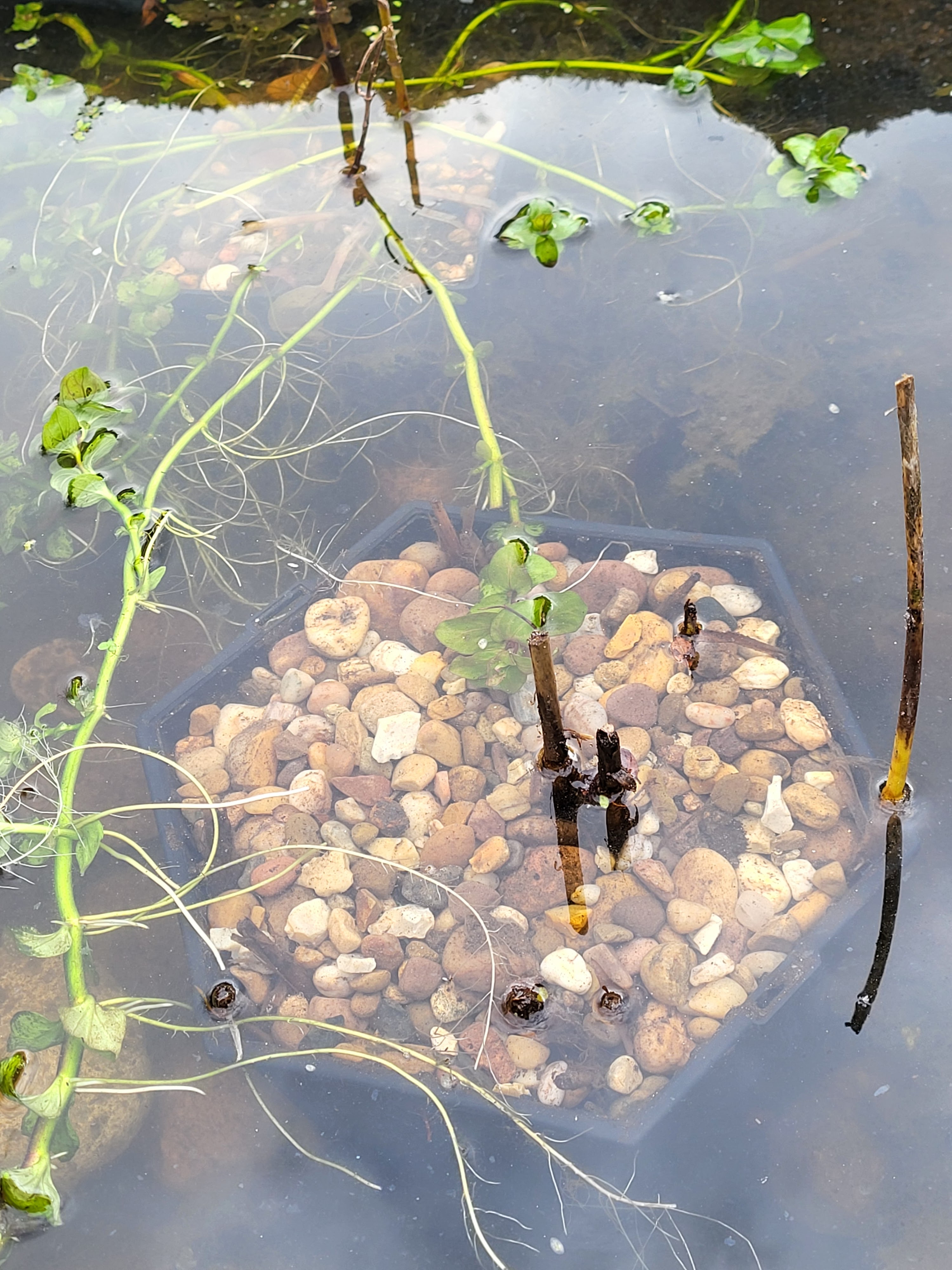 As nothing seemed to be happening in Lily Pond, I spent an hour dismantling the miniature bulrush to get rid of the invasive grass in the basket and I also cleaned up the lily a bit and added a less obtrusive handle. Tidy now.