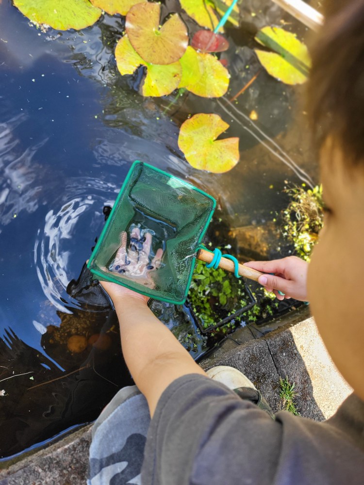 When the grandchildren visit, they’re keen to go frog spotting and, provided they are gently supervised, the garden is the perfect antidote to any kind of screen time. Here’s one little helper, usually an expert on all things dinosaur and minecraft, carefully catching and examining some fat tadpoles in Lily Pond.
