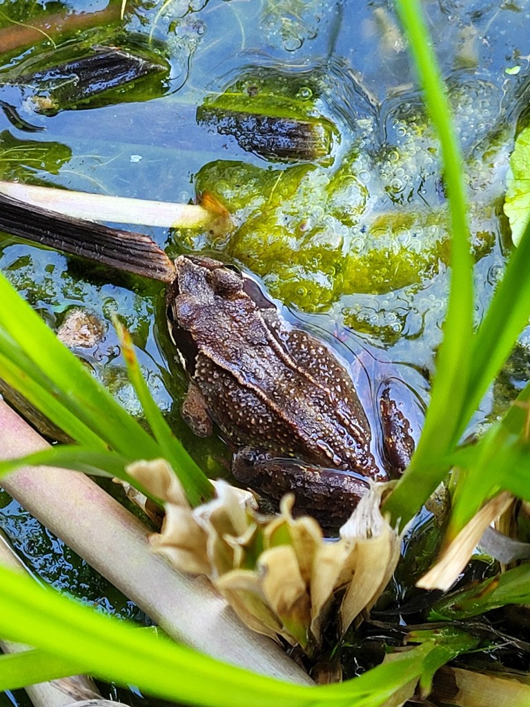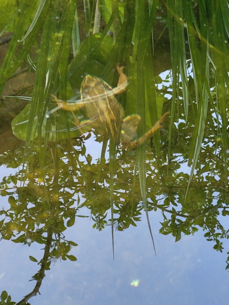 On Wednesday it was the hottest day of the year so far, reaching 23 degrees in the Midlands. There were a few frogs about, basking in Lily Pond with heads just above the water surface.