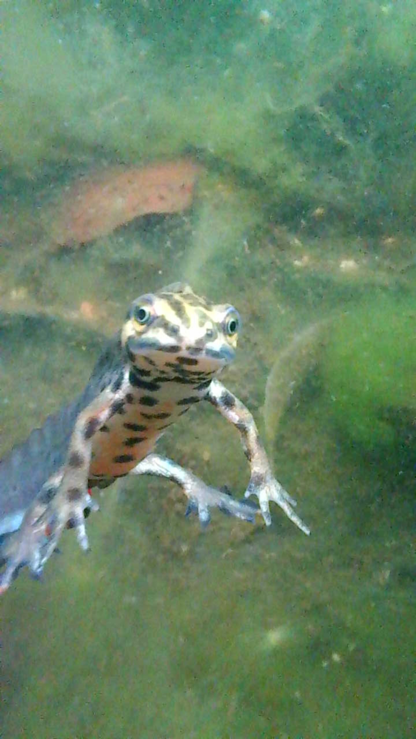 In Lily Pond, the tadpoles were less obvious, hiding under rocks and the roots of established spreading plants. However, this beautiful newt was on the prowl.