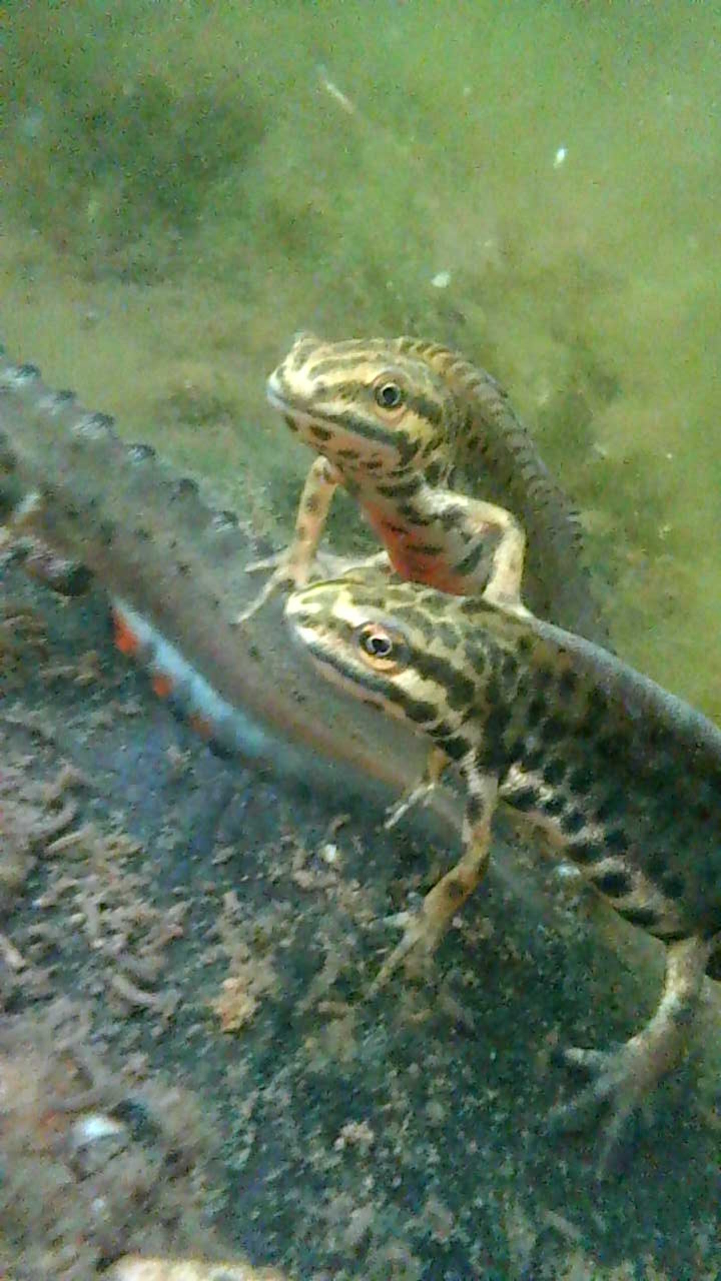 On Tuesday, I captured some footage of the distinctive tail flick of a mating newt. The male newt flick his tail as a way to signal interest and to waft pheromones in the female newt’s direction.