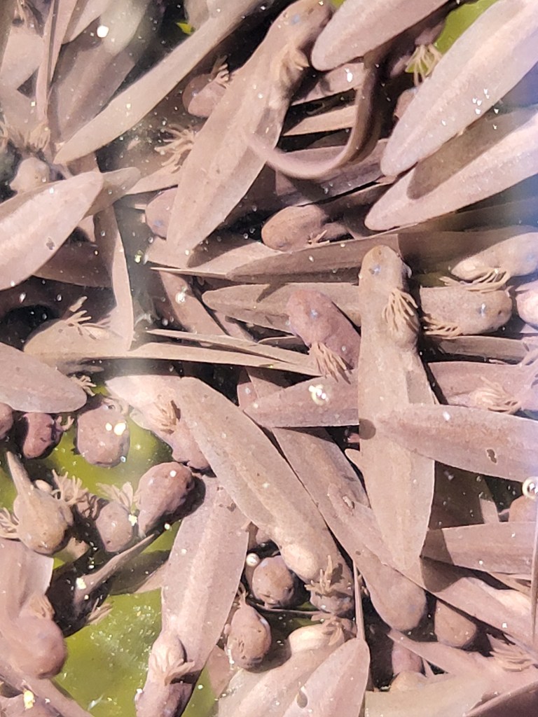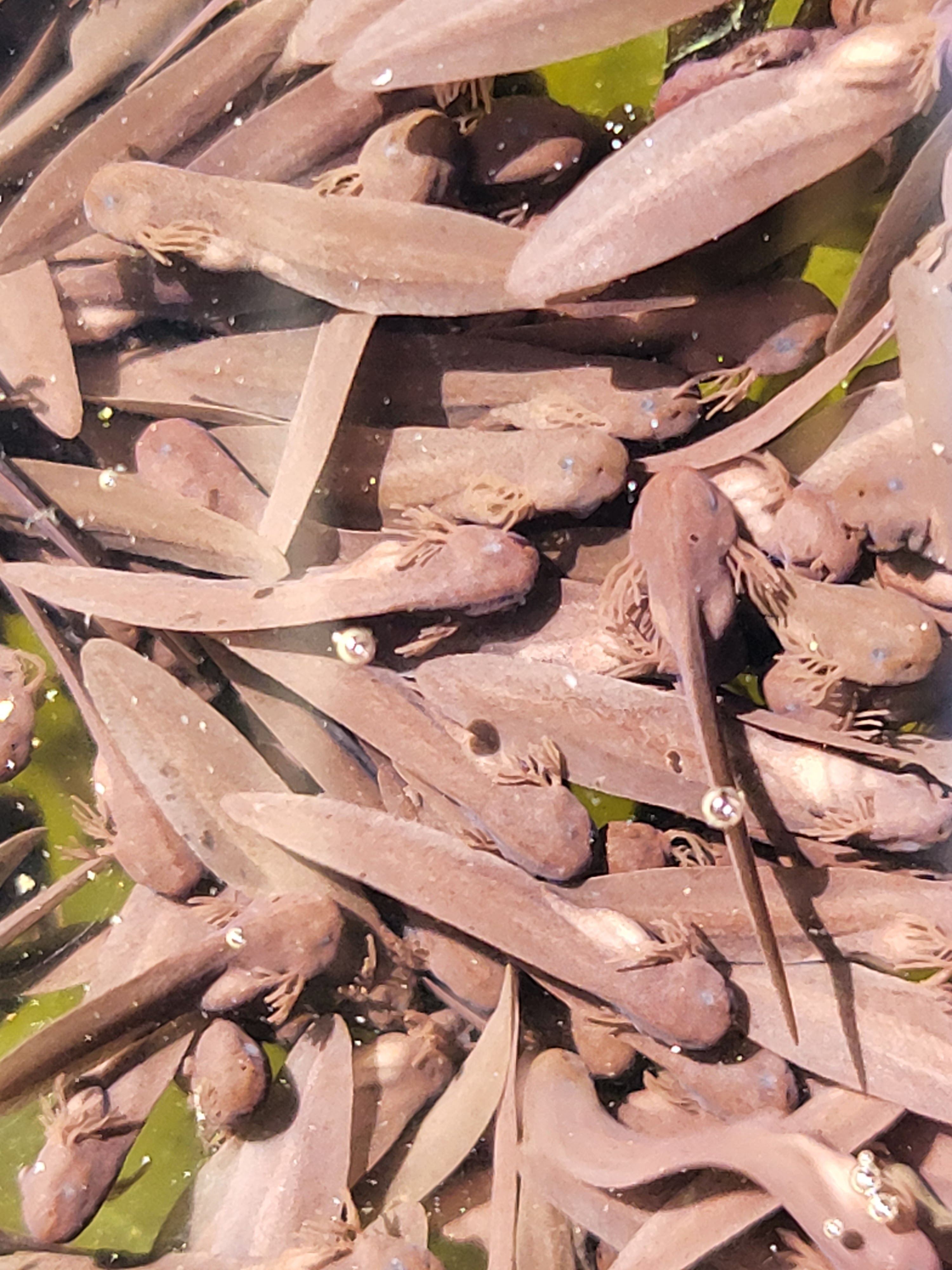 You can also see how tightly packed the tadpoles are, although increasingly I’m seeing them all across the pond now.