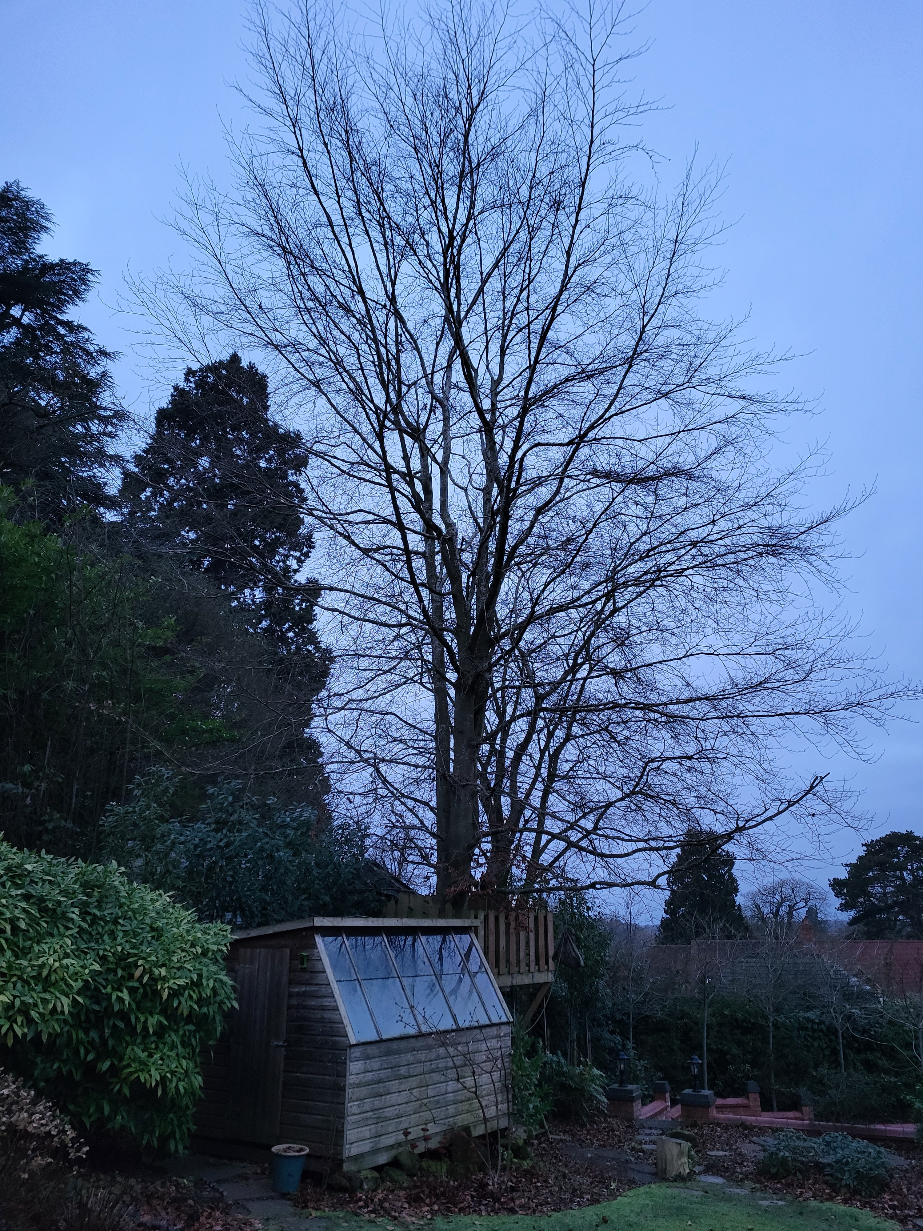 We had the Beech tree reduced by about 20 feet in January and kept the logs for winter fuel next year, having already stored plenty in my shed for this year. But the Beech logs were just stacked outside, so needed covering to dry out. We’ve now got a neat stack under plastic sheeting, tucked away in the Yard. Nice job for a damp autumn day, although the afternoon ended surprisingly early due to the clocks going back an hour. Why does this still surprise us every year?