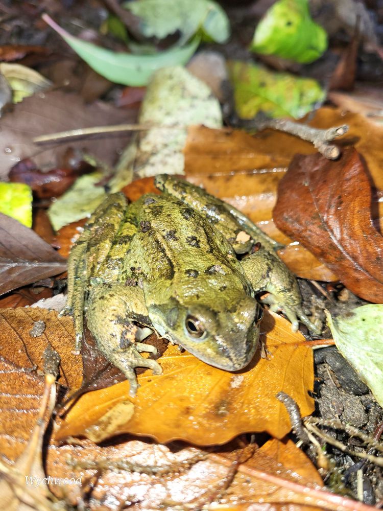 Anyway, look who we discovered tucked into the logs. Actually, we found two big frogs. I removed this one, putting it gently into the leaves under the trees. The other one refused to budge and buried itself further under the logs. Nice to know we have at least three mature specimens (including the one by Lily Pond). Bodes well for spawning time next year!